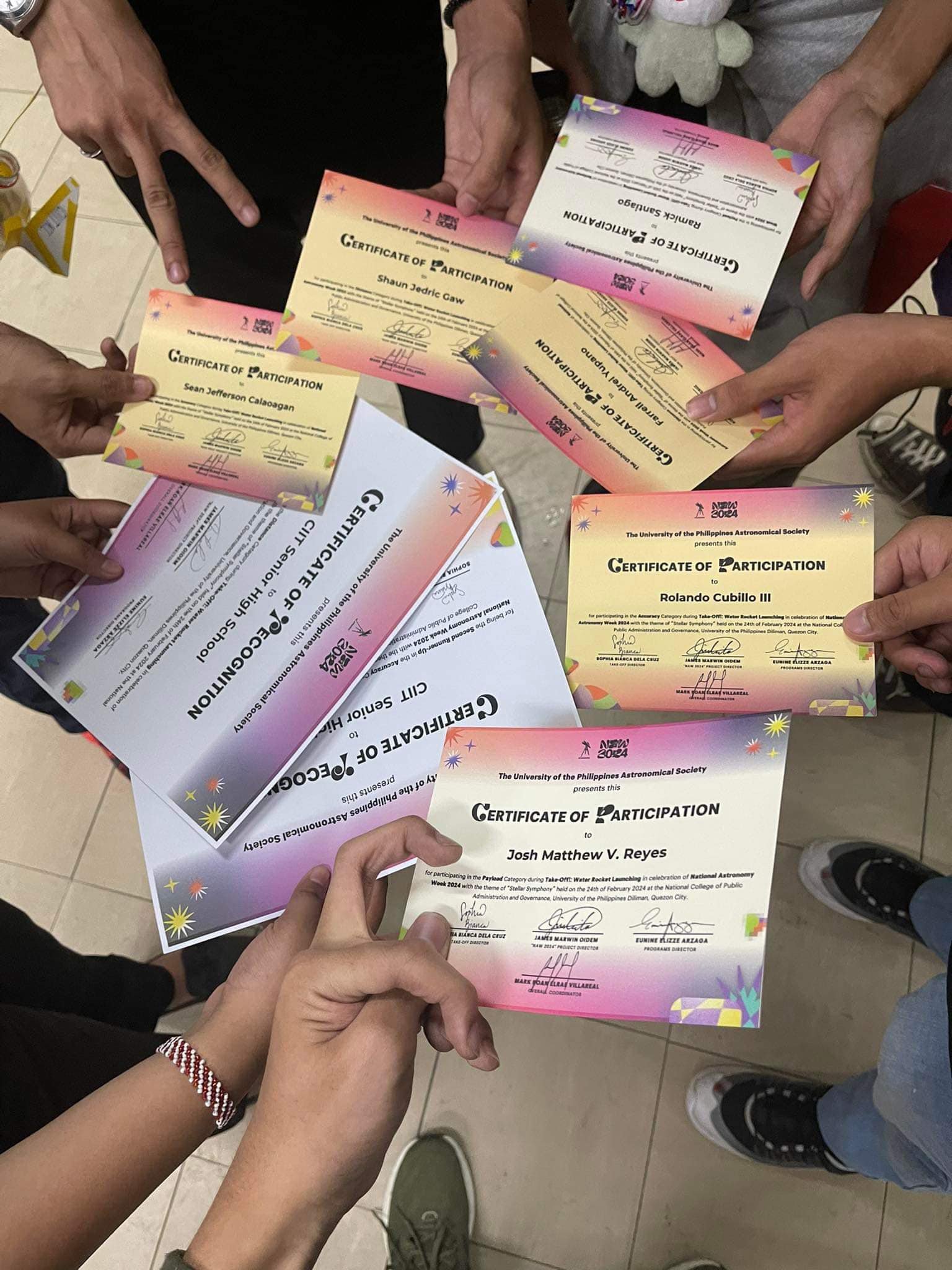 Rocket Competition - Back in 2023, me and 5 other people in my section volunteered to represent CIIT SHS for a water rocket competition. My teammate and I was placed into the accuracy category. Despite only 3 days of practice, we managed to get into 3rd place in accuracy. CIIT also won in the distance category, landing a 3rd place as well.